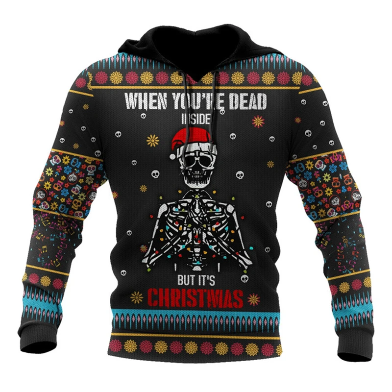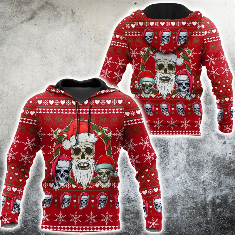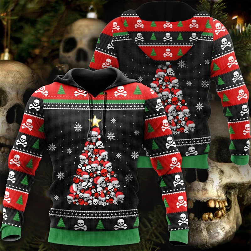Christmas Skull Graphic Personality Hoodie Pullover Tops Fashion Hip Hop Oversize Clothing Tops