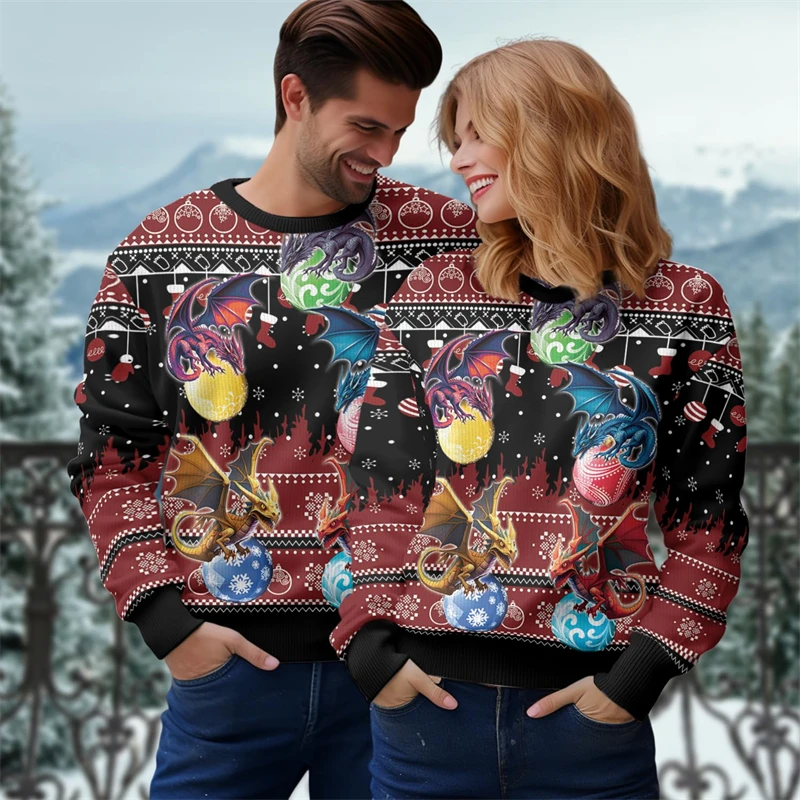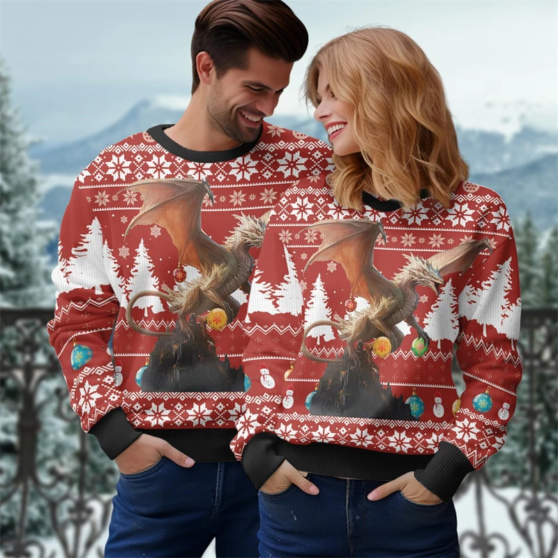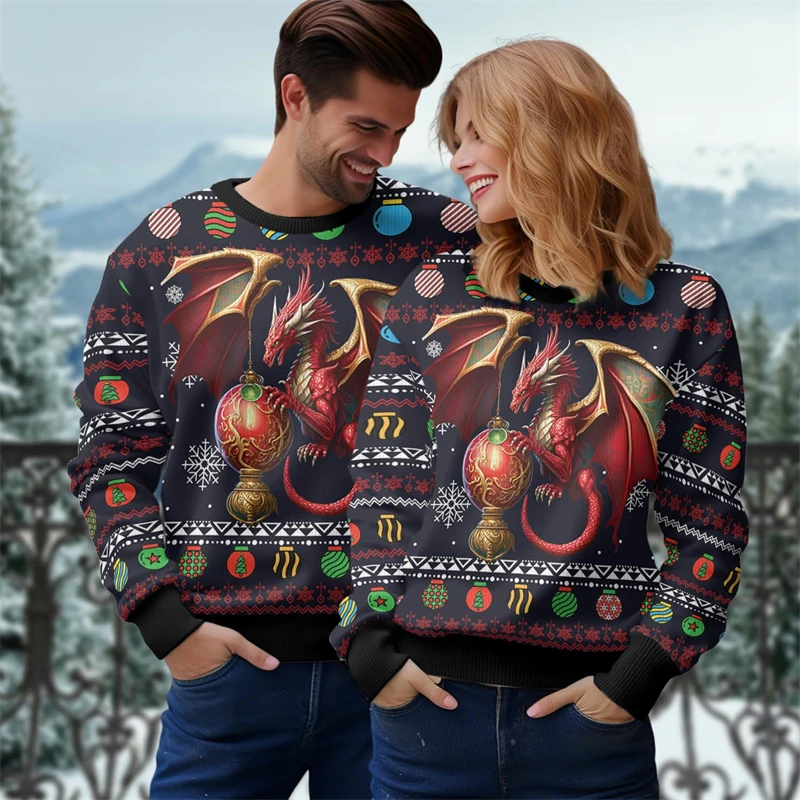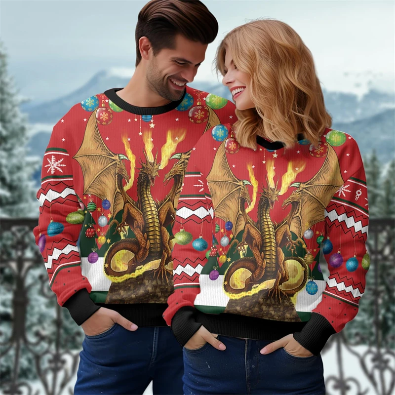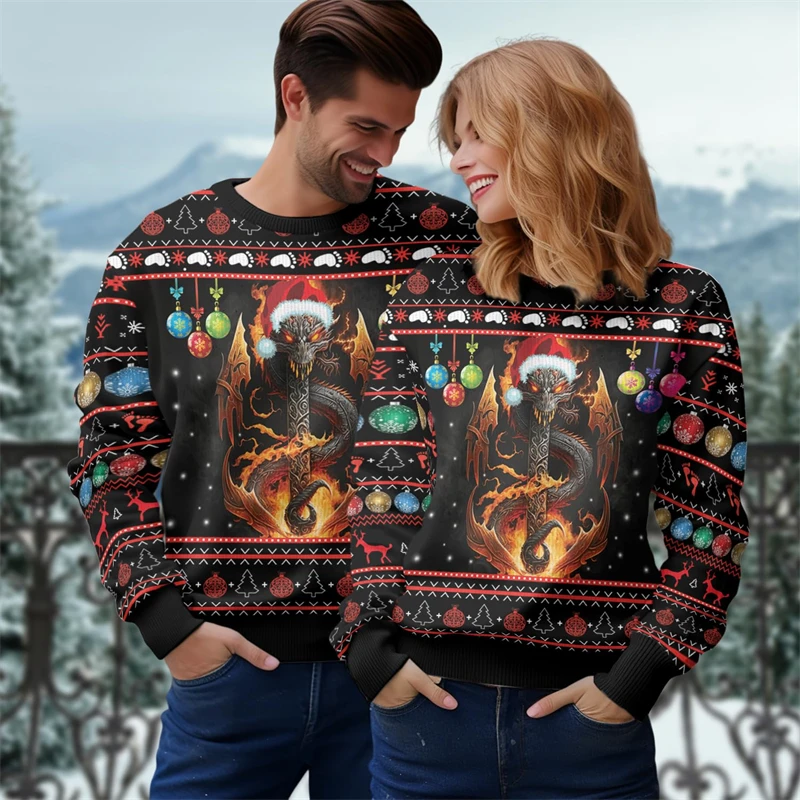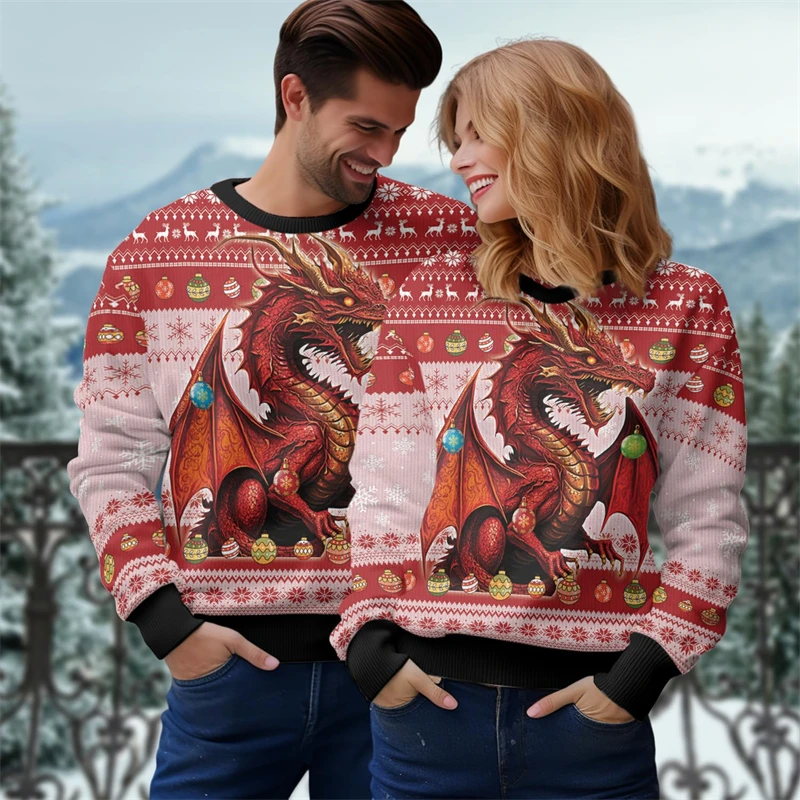 Dragon Pattern Ugly Christmas Sweater Fashion Autumn Long Sleeve Unisex Pullovers