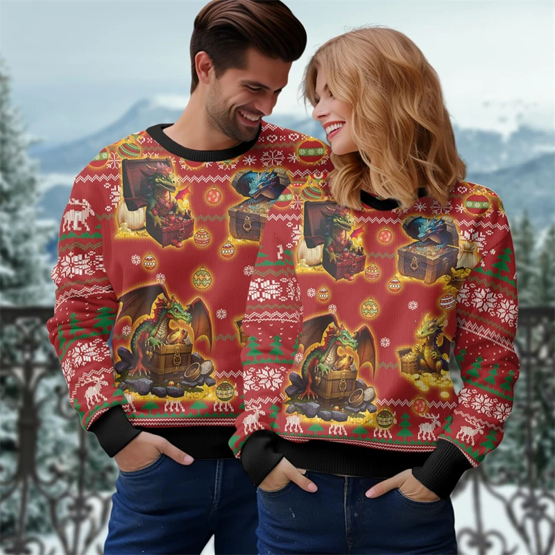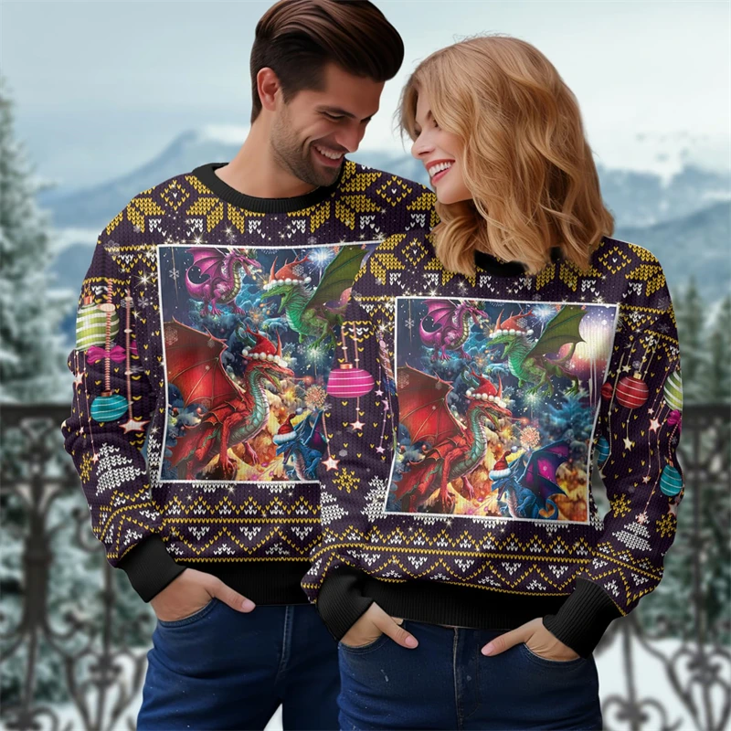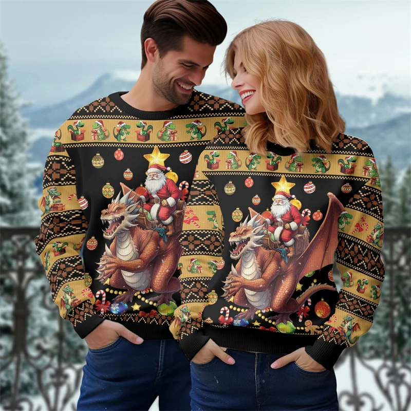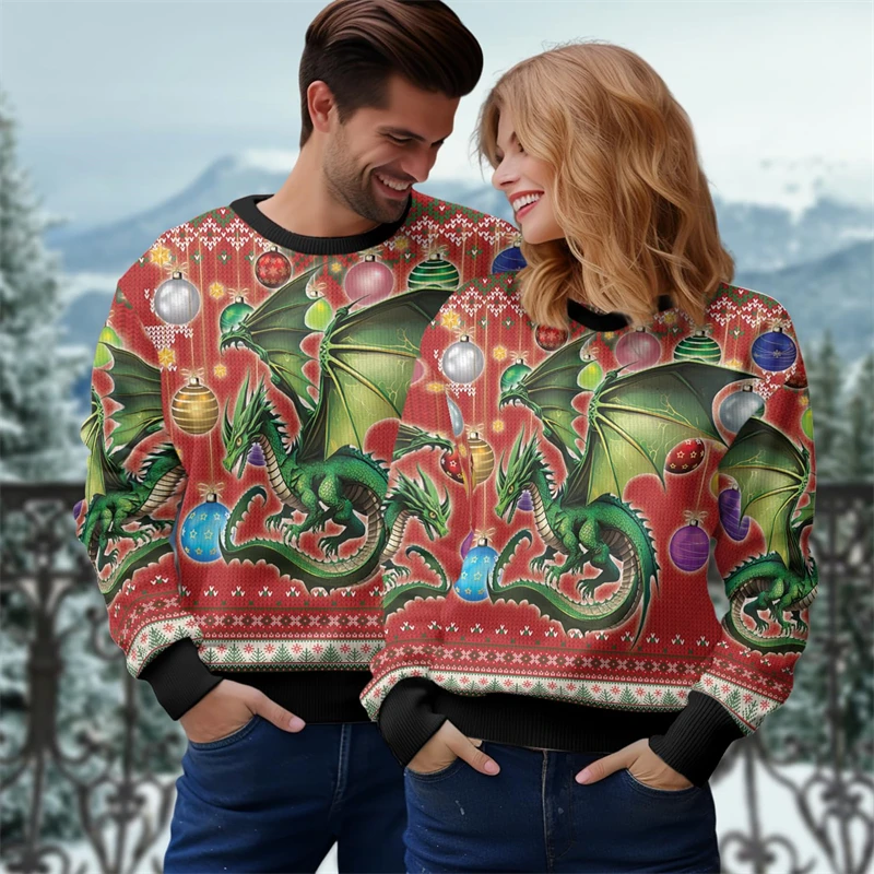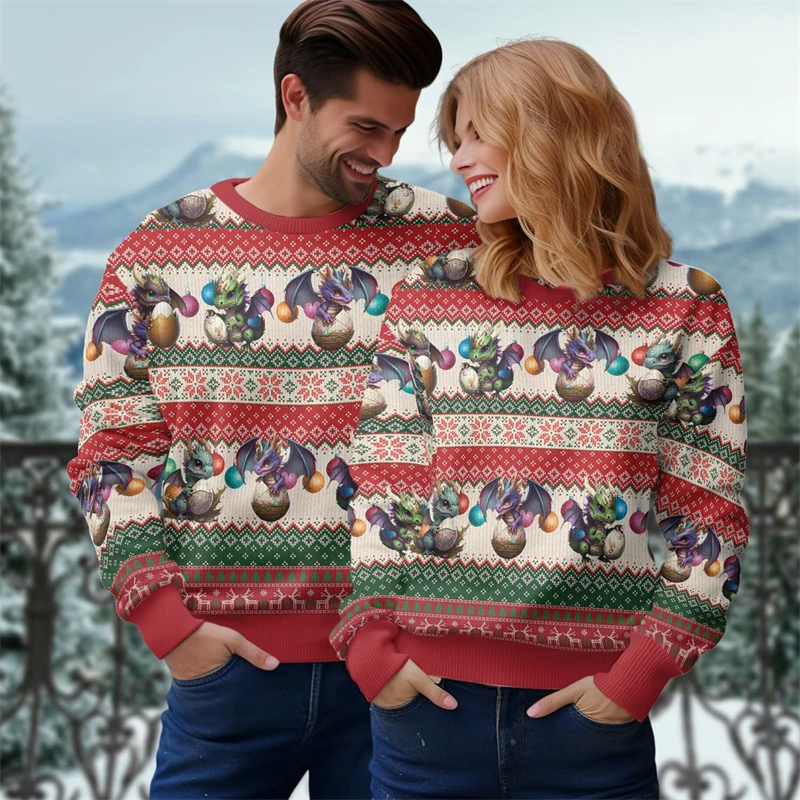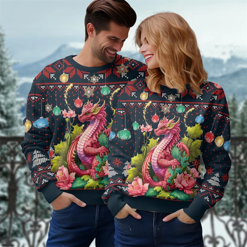 Dragon Pattern Ugly Christmas Sweater Fashion Autumn Long Sleeve Unisex Pullovers
