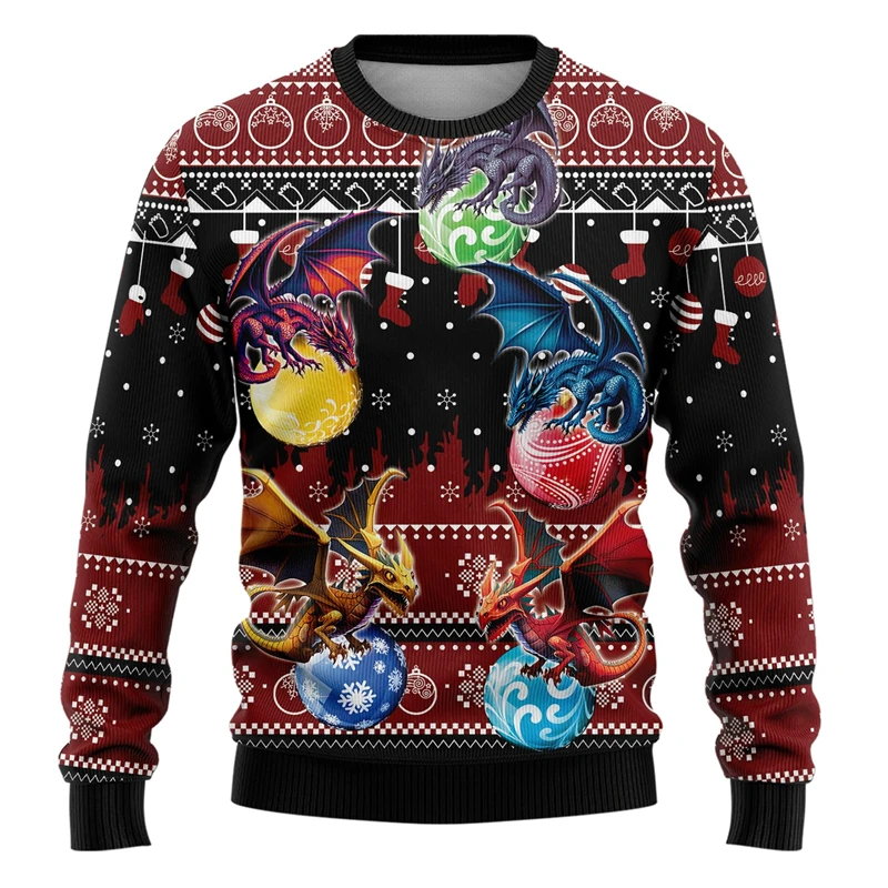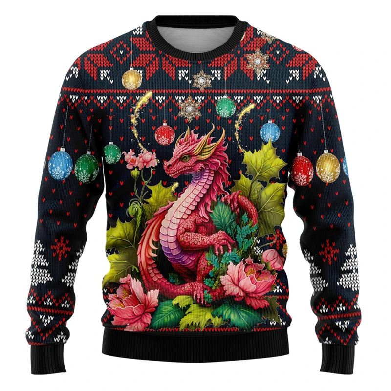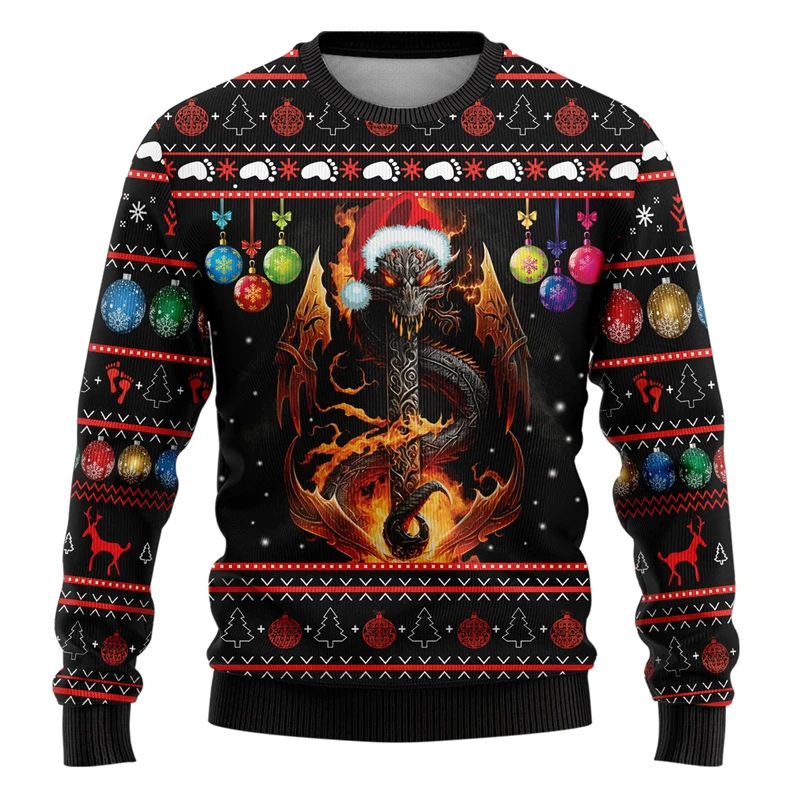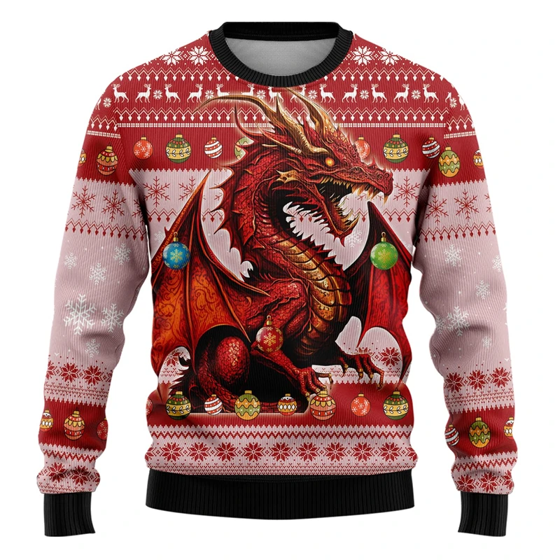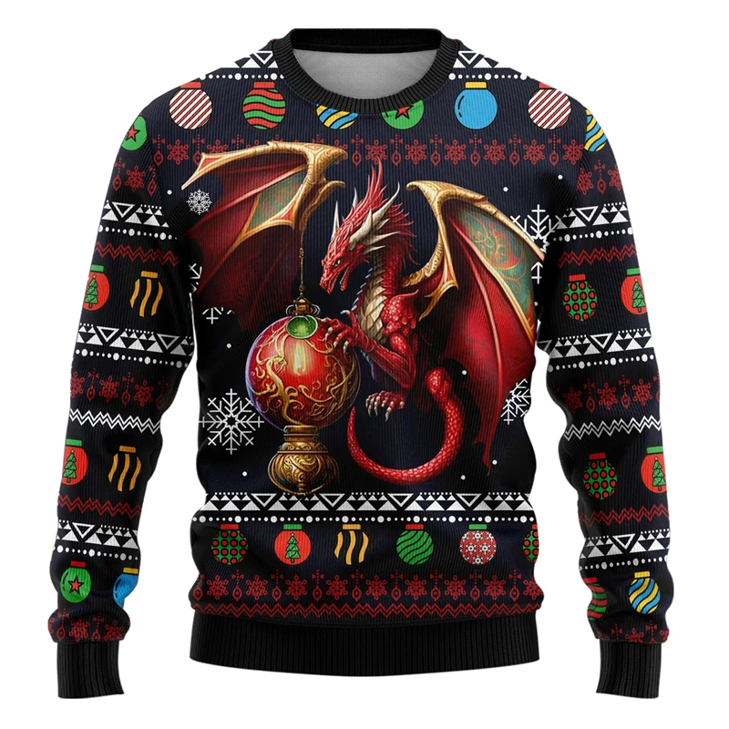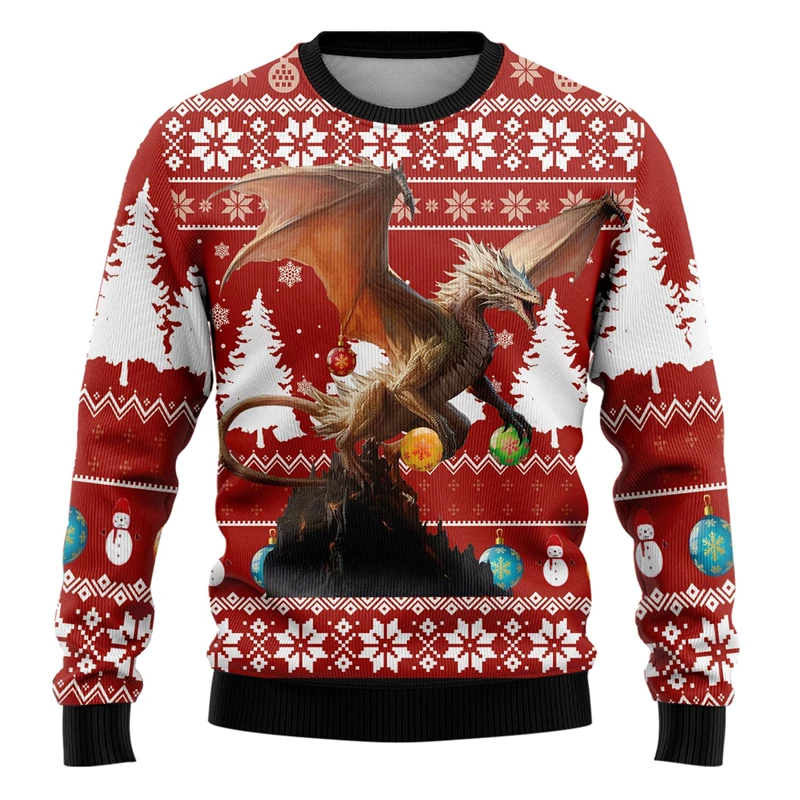 Retro Dragon Pattern Ugly Christmas Sweater Fashion Autumn Holiday Wear Sweatshirts Casual Tops