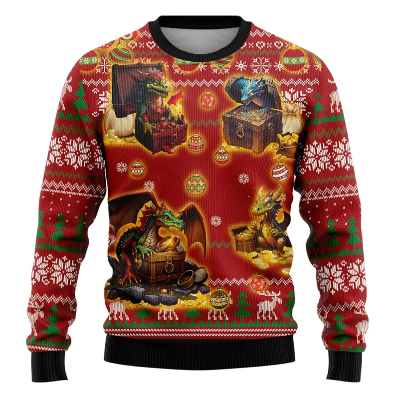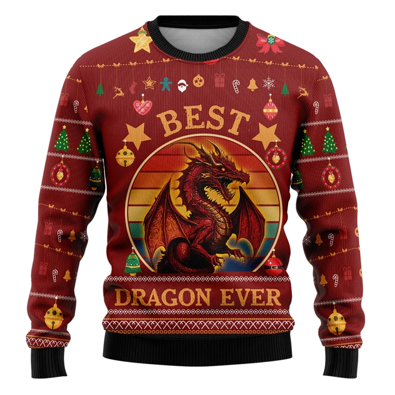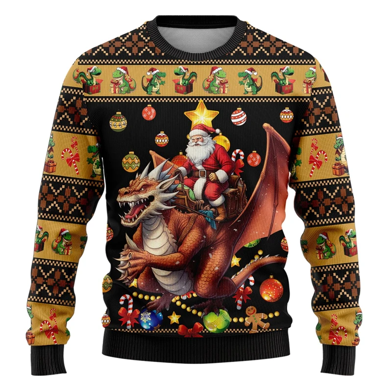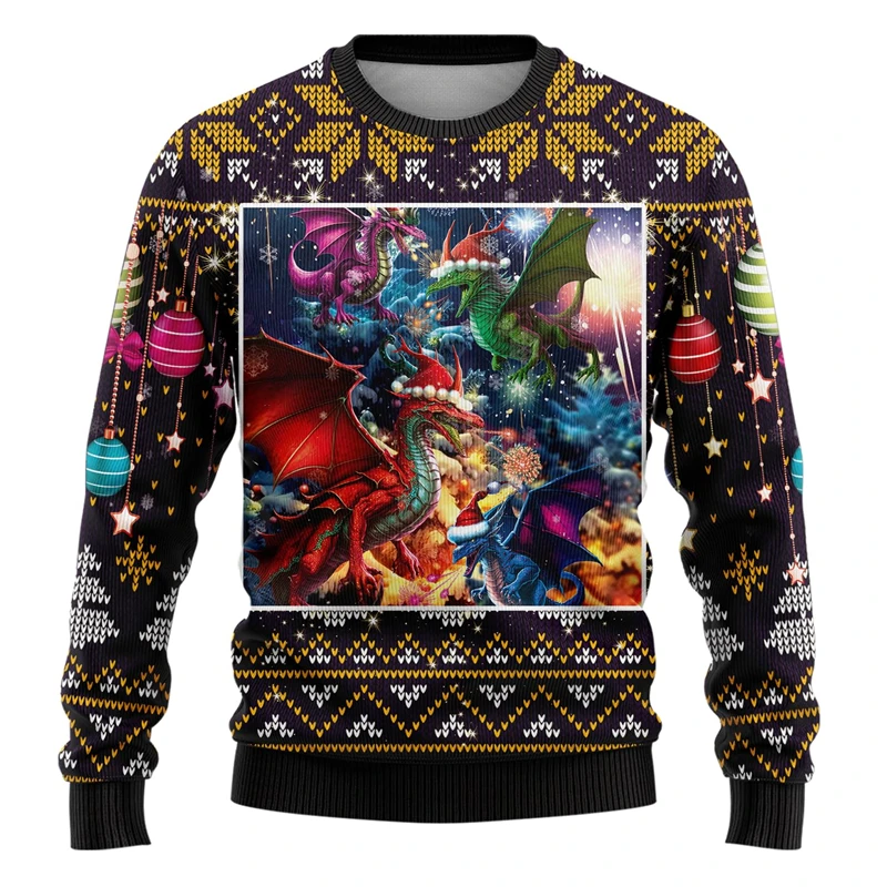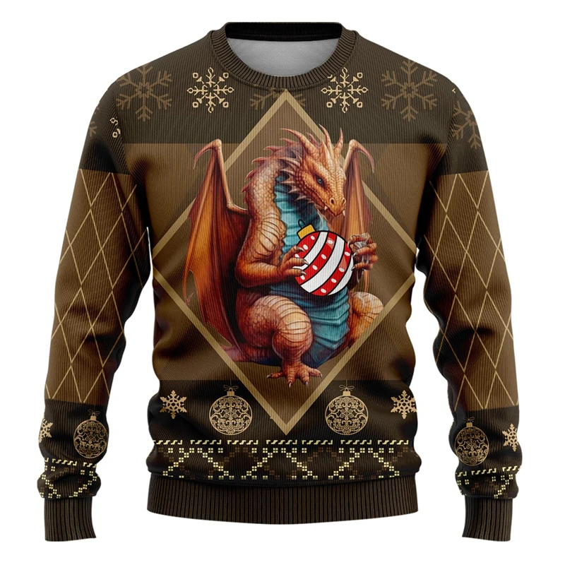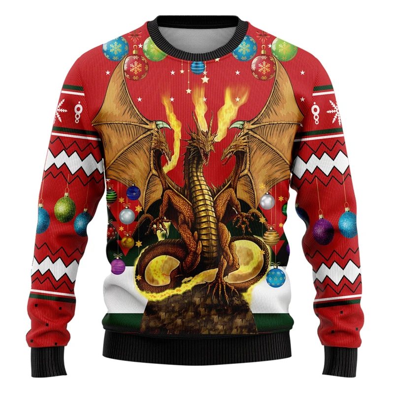 Retro Dragon Pattern Ugly Christmas Sweater Fashion Autumn Holiday Wear Sweatshirts Casual Tops