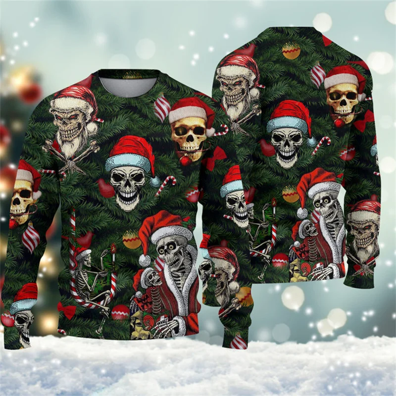 Skull Funny Party Christmas Sweater Gift Santa Claus Pullover Clothing