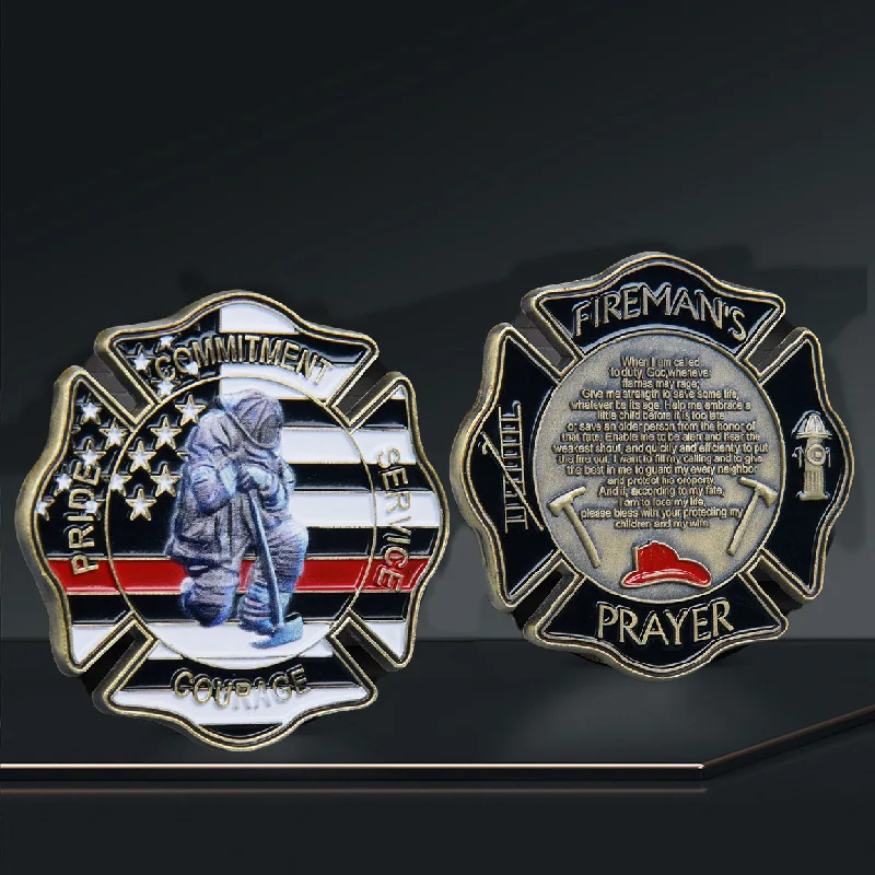 United States Firefighter Challenge Coin Thin Red Line US Flag Prayer Coin Firefighter Support Thank You Gift Art Collection