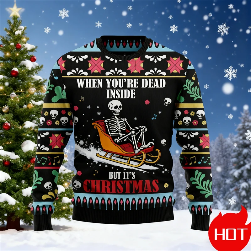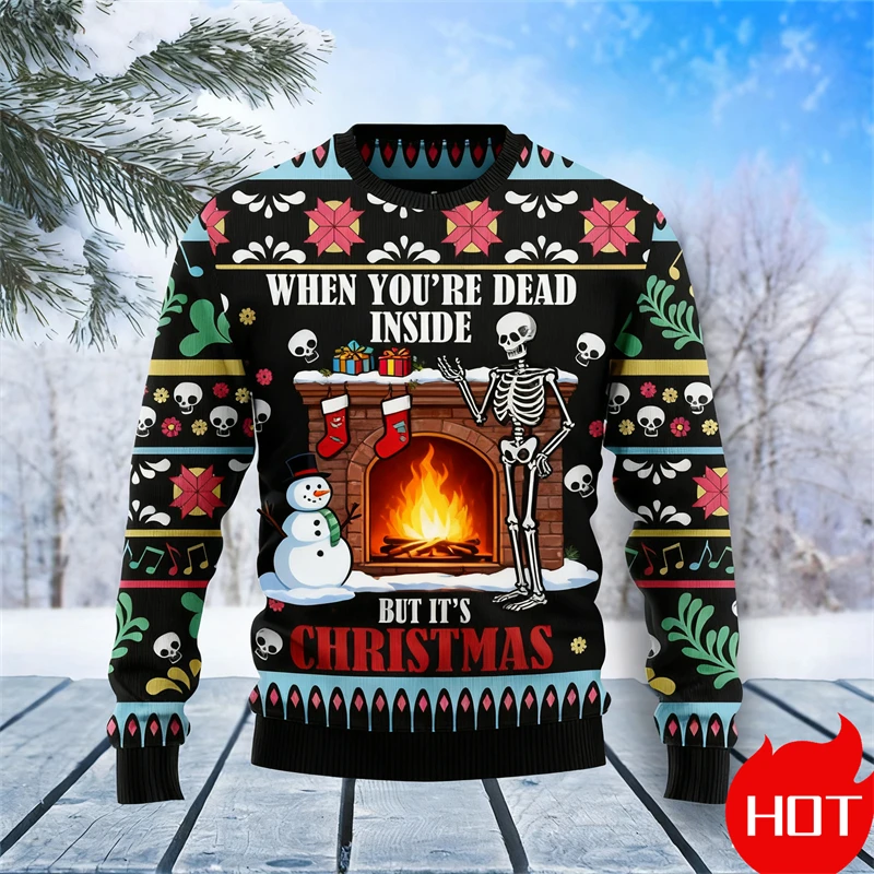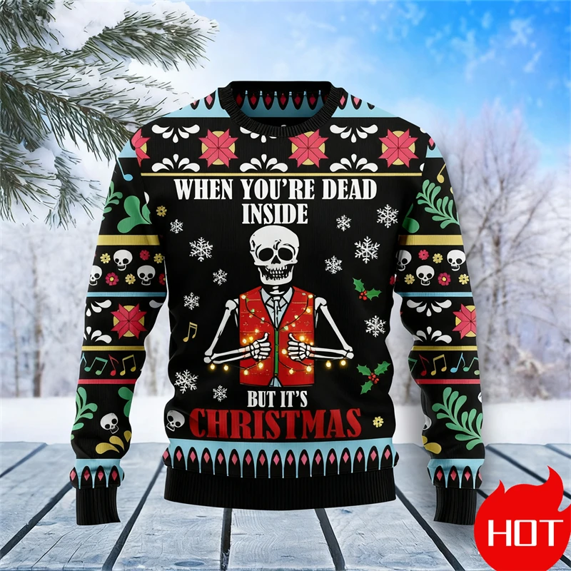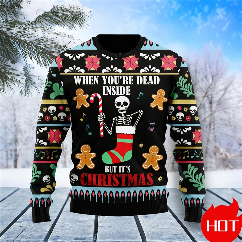 Skull Funny Design Christmas Sweater Clothes Graphic Sweatshirts