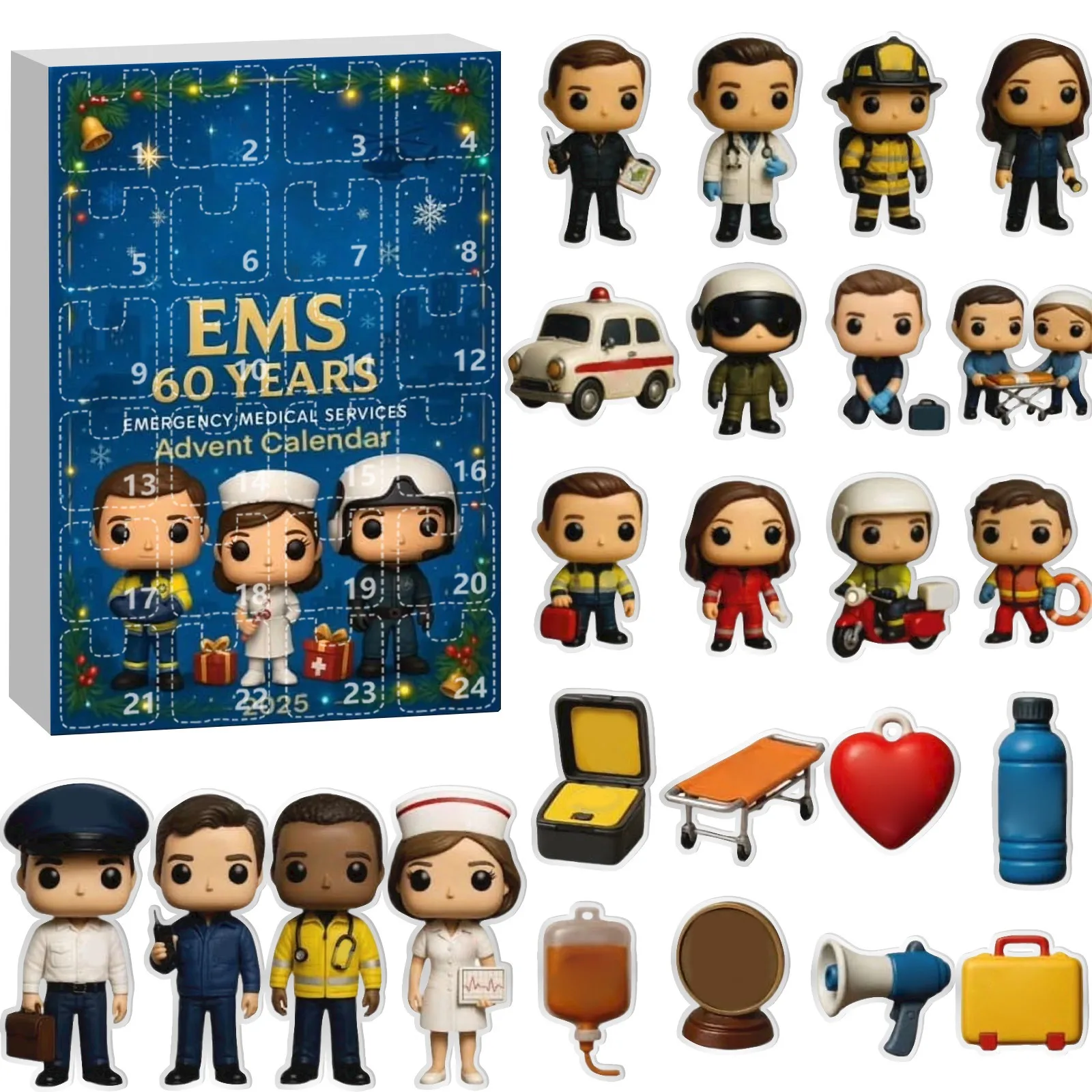 Arrival Calendar Includes 24Pcs Doctor Firefighter Police Theme Decorative Pendants Xmas Birthday Surprise Collectibles