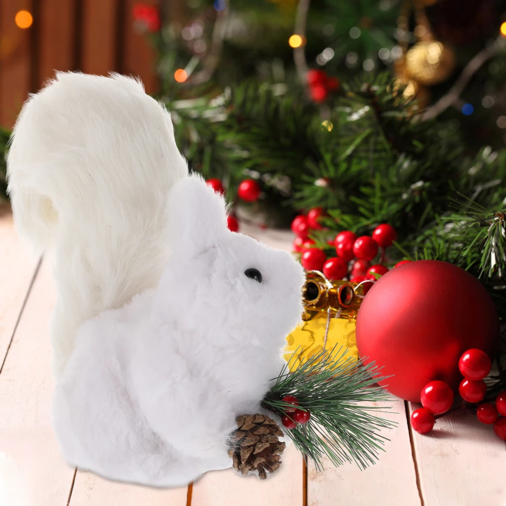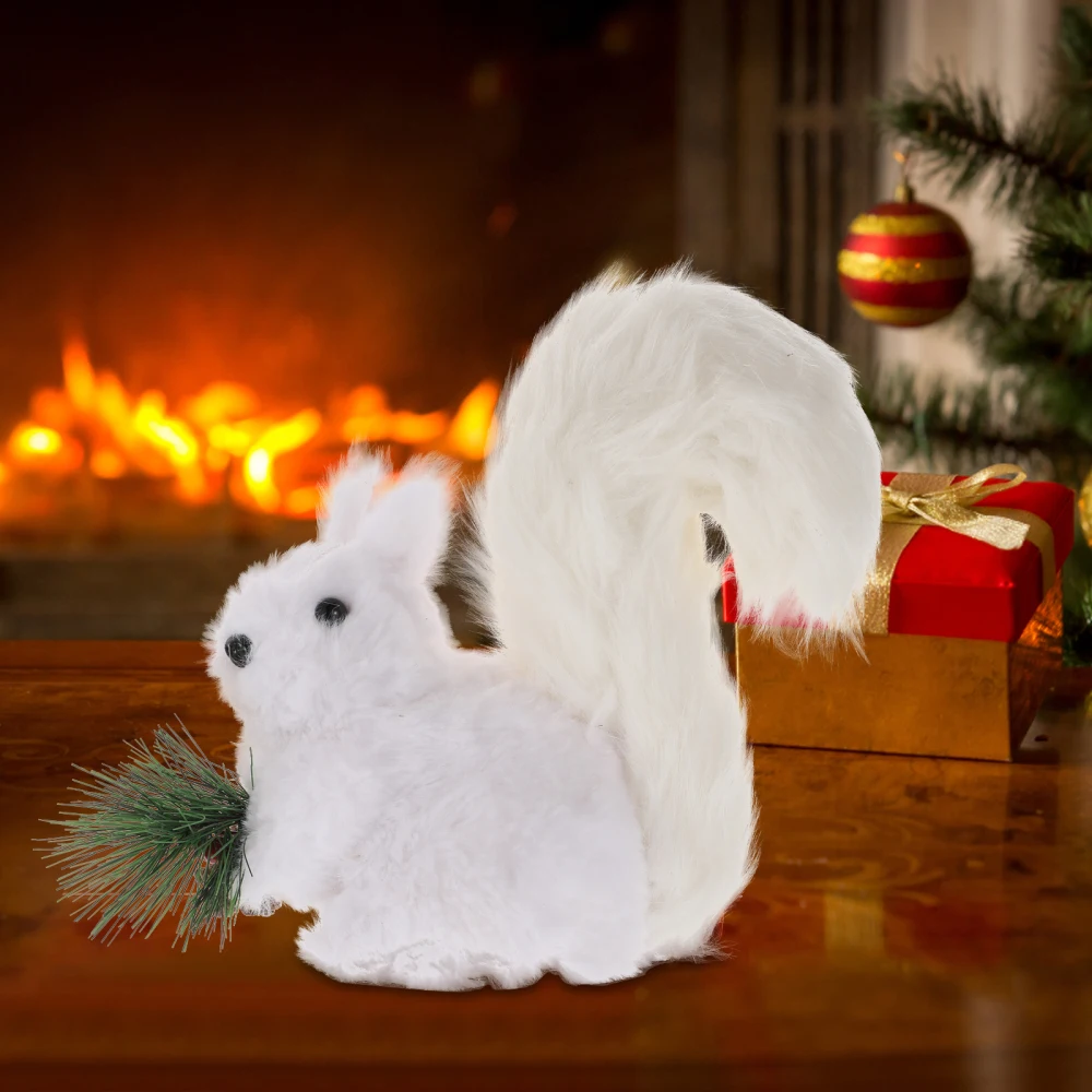 Artificial Wooden Squirrel Figurine Ornament Simulation Animal Plush Statue Christmas Decoration