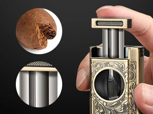 Cigar Holder & Cigar Draw Enhancer:The butane torch lighter with safety lid to avoid sudden ignition when not in use, also a cigar holder for your cigars; Cigar draw enhancer to solve the problem of overfilling and clogging at any time, make the smoking smooth; The visible liquid level window on the side of the windproof lighter allows you to check the status of the remaining butane and fill it up promptly, highly durable lighters for smoking