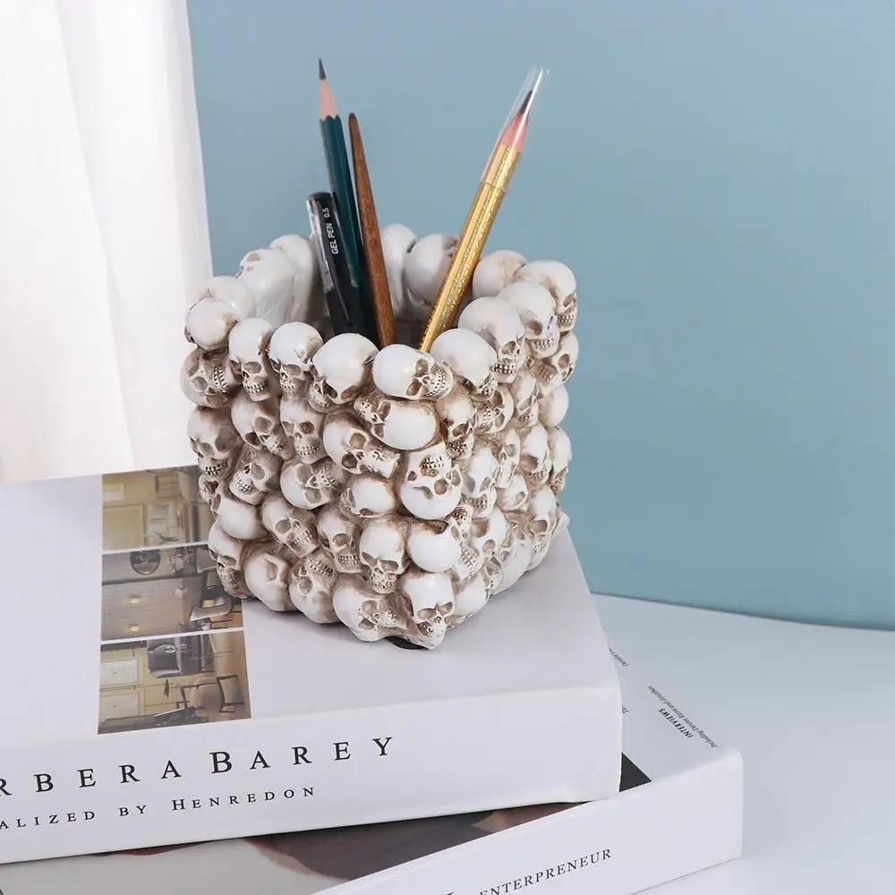Desktop Storage box Skull Pen Holder Pen Pencil Holder Stationery Holder Desktop Organizer Resin Decor Stationery