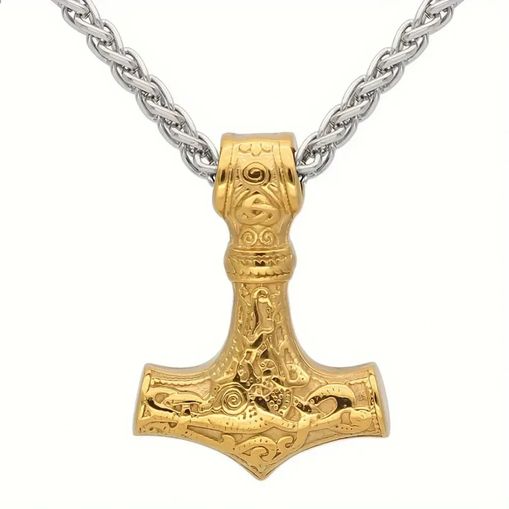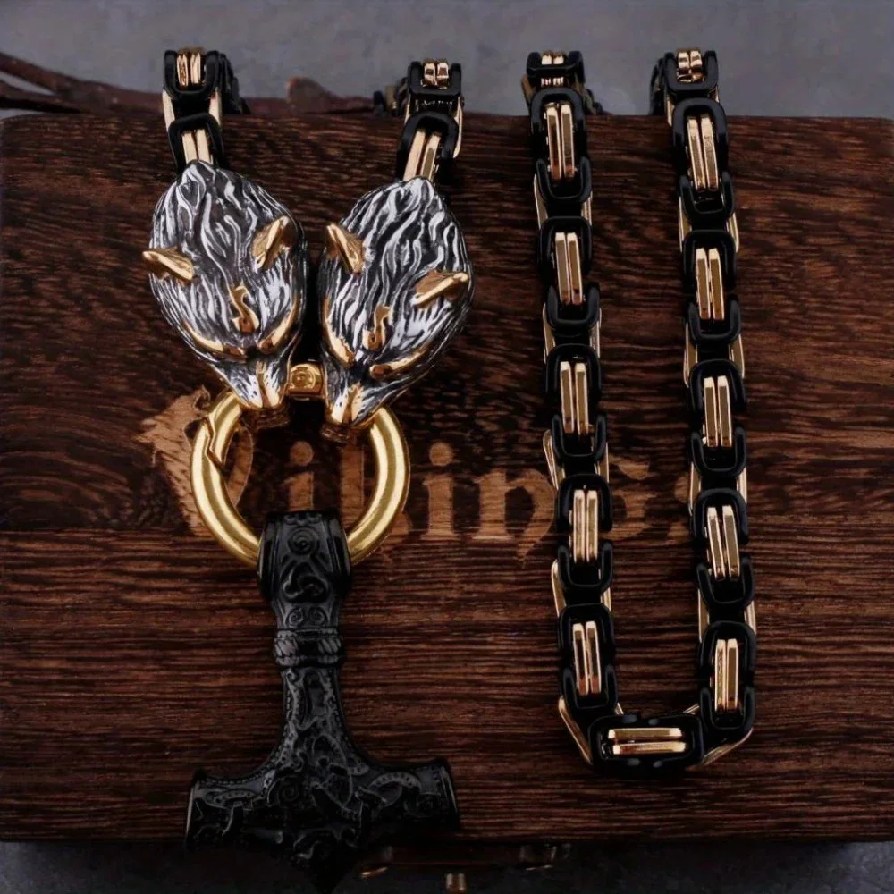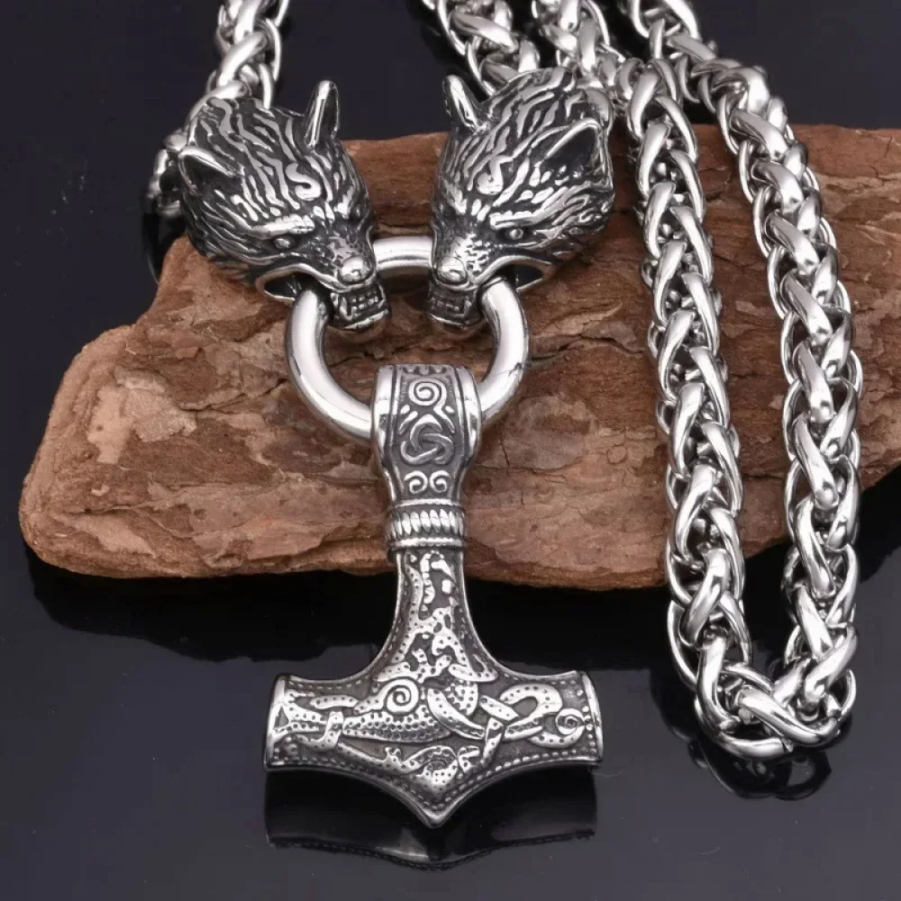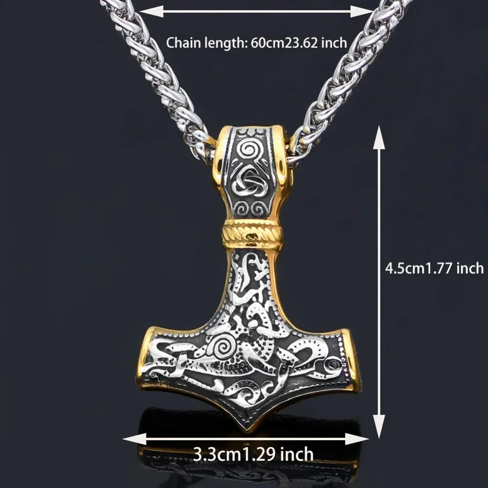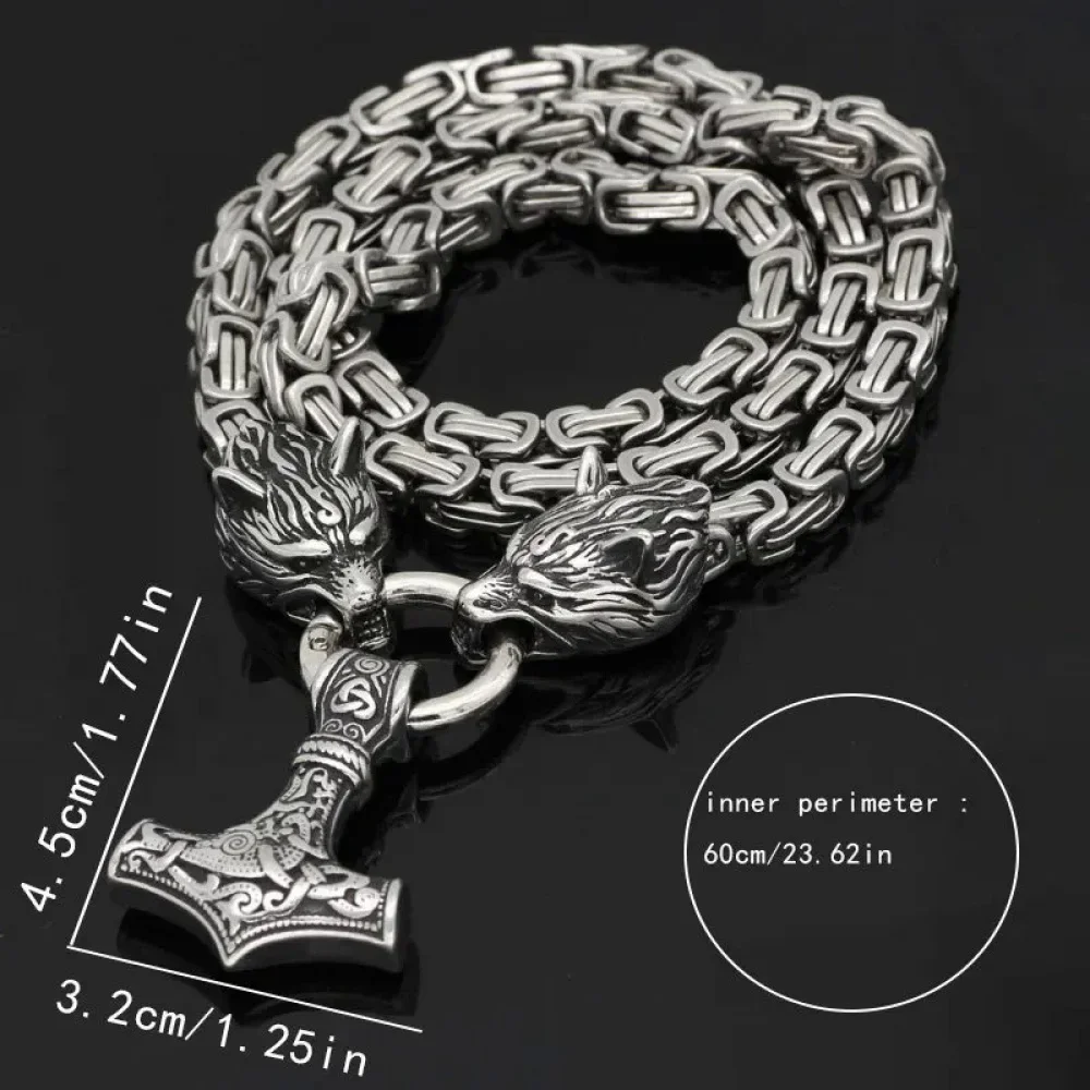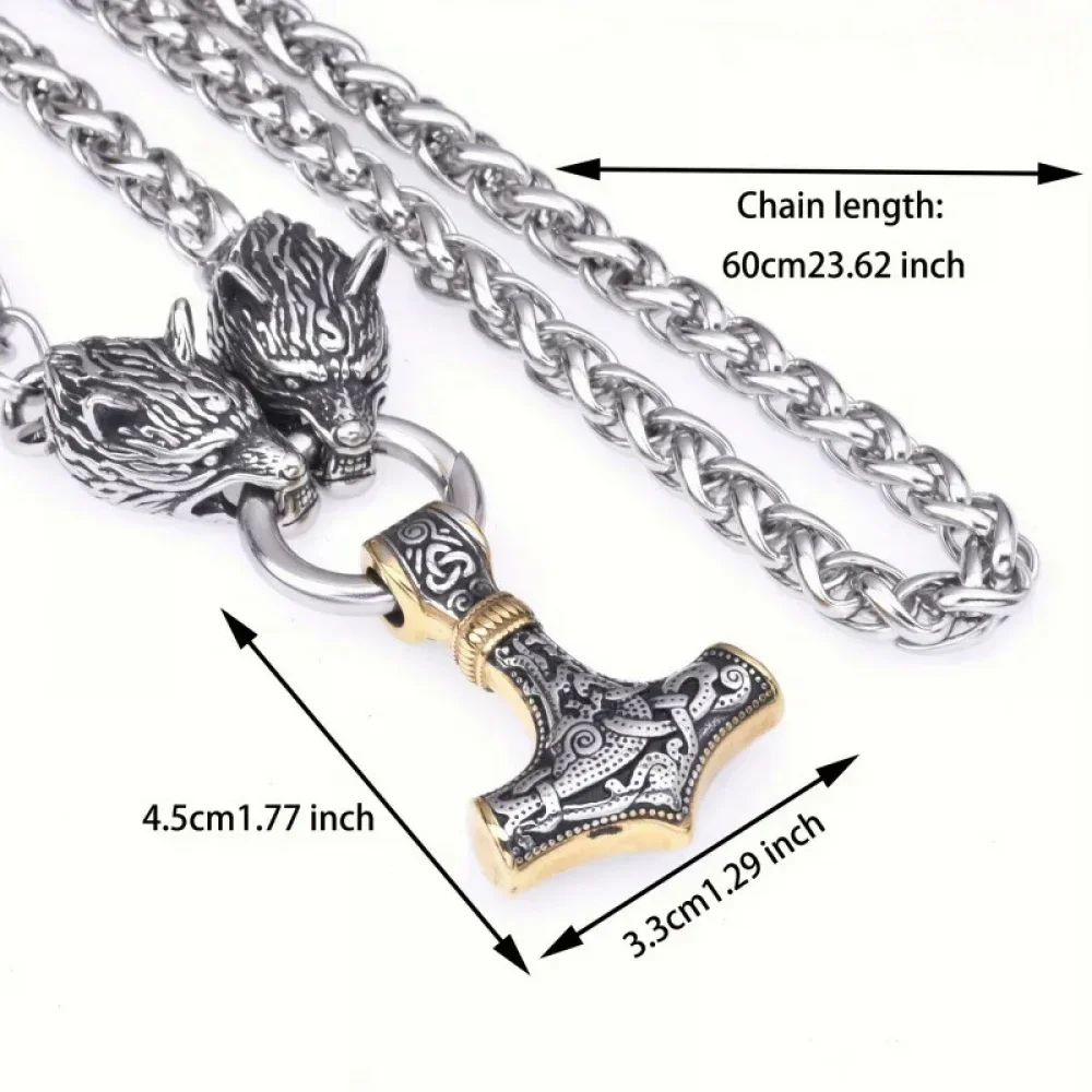 Fashionable And Exquisite New Retro Nordic Viking Hammer Pendant Wolf Head Necklace For Personalized Men'S Amulet Jewelry Gift
