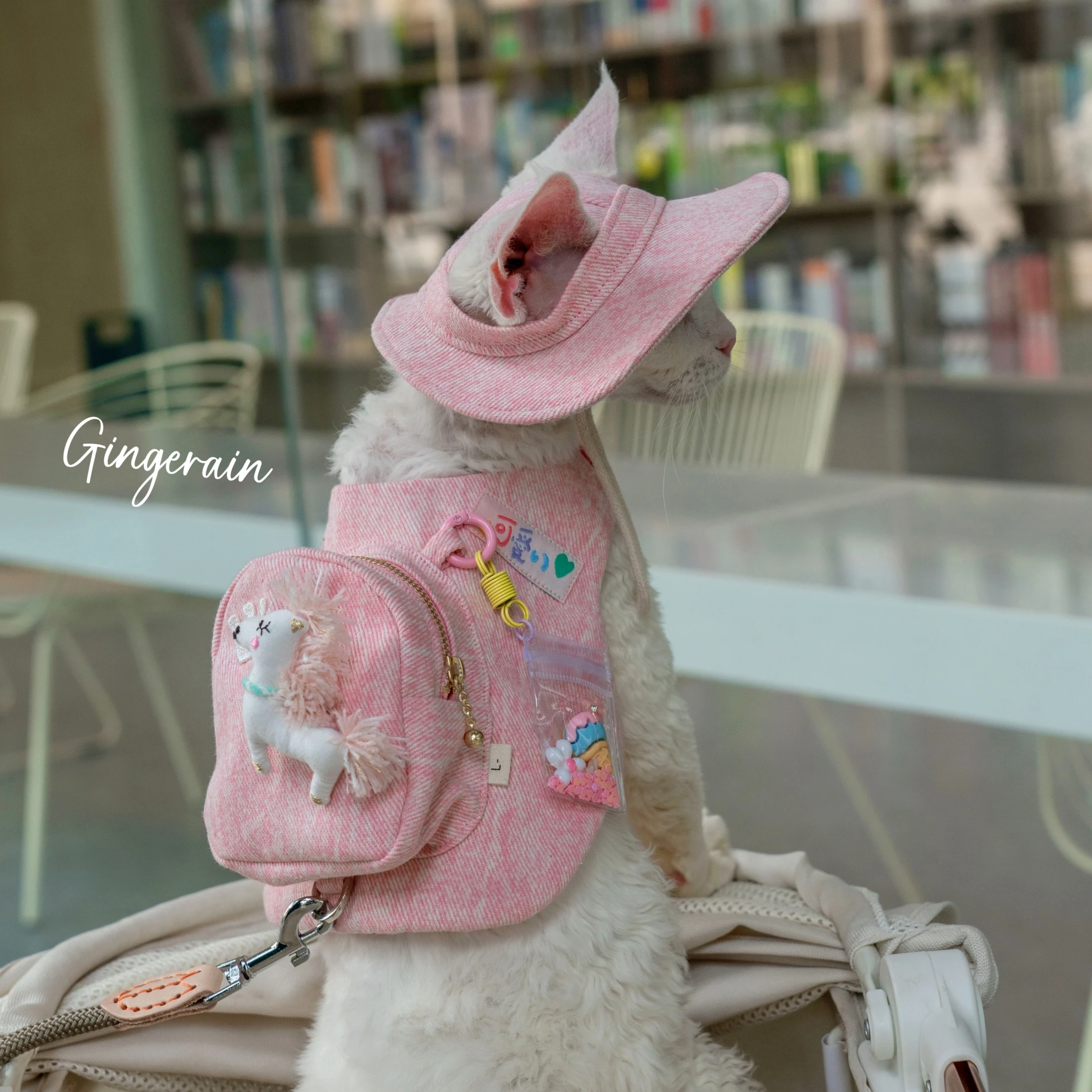 Handmade Luxury Travel Cat Carrier Snack Bag Pink Cute Pet Self Backpack Harness Vest for Cats Gotas Katten Sphynx Devon Rex