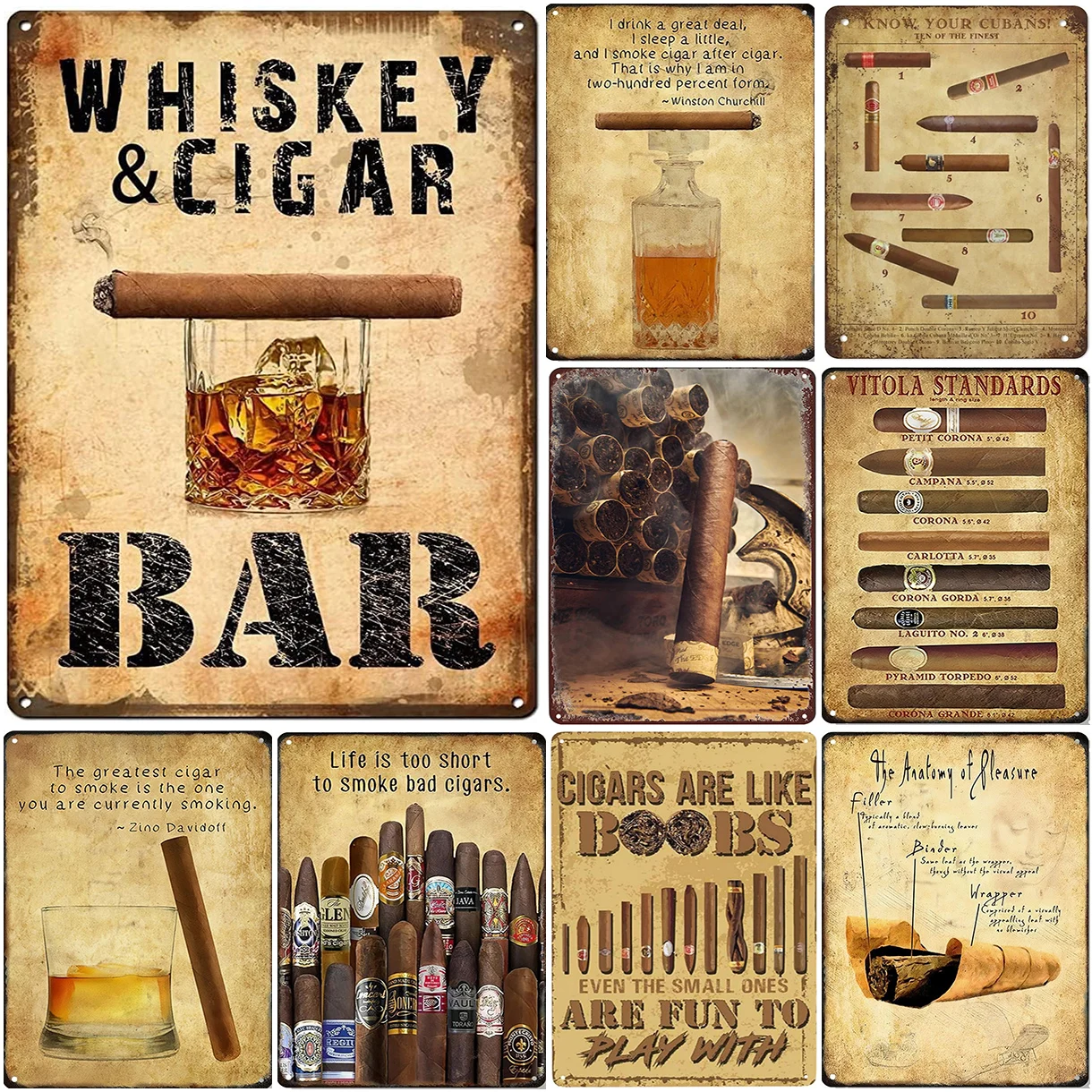 Metal Tin Signs Whiskey Cigar Bar Wall Decoration Plaque Vintage Art Poster Iron Painting for Man Cave Home Cafe Garden Club Bar
