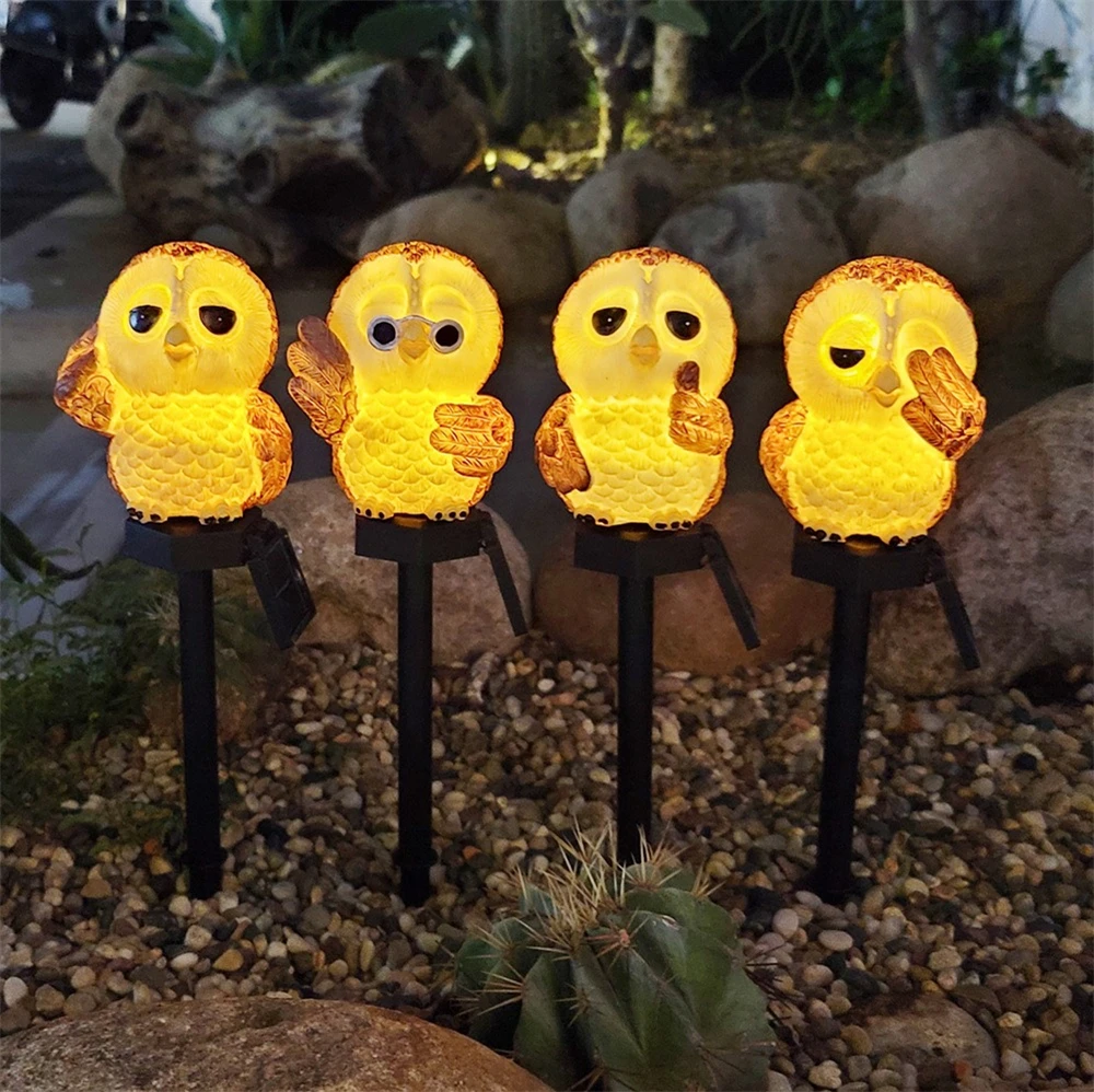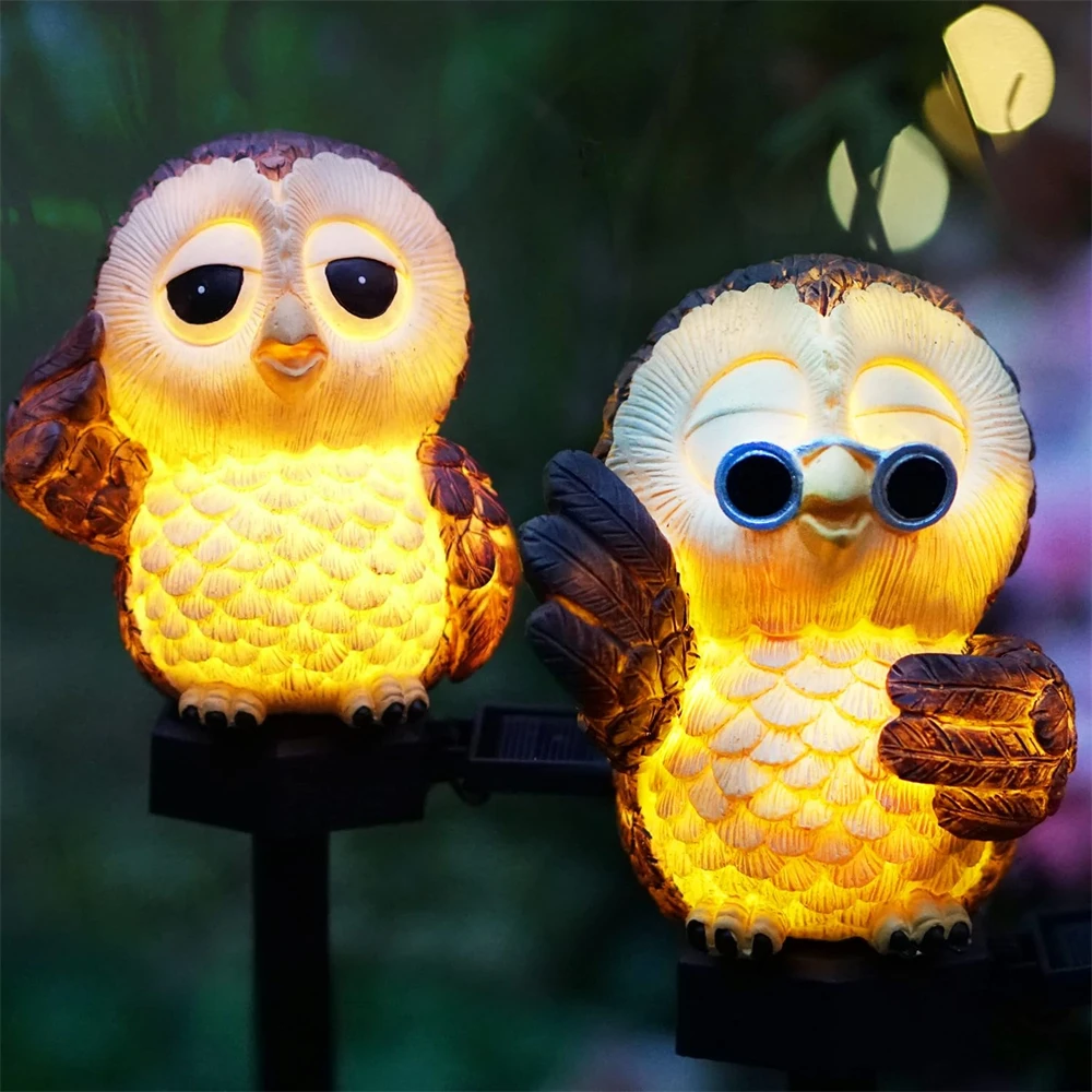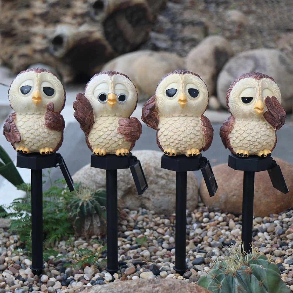 Resin Owl Solar LED Light with Stake Animal Figurine Statue Waterproof Light for Garden Walkway Courtyard Party Decoration