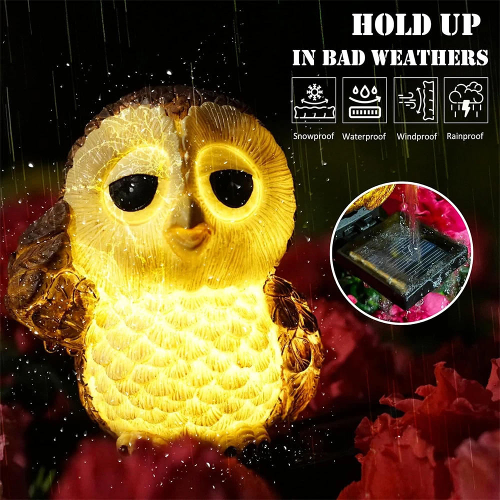 3.Owl Solar Lights Outdoor Waterproof - IP64 waterproof outdoor lights.handcraft owl decorations add warming and joyful atmosphere to your home,also suit for Halloween Thanksgiving Day,National day,Christmas party decorations.