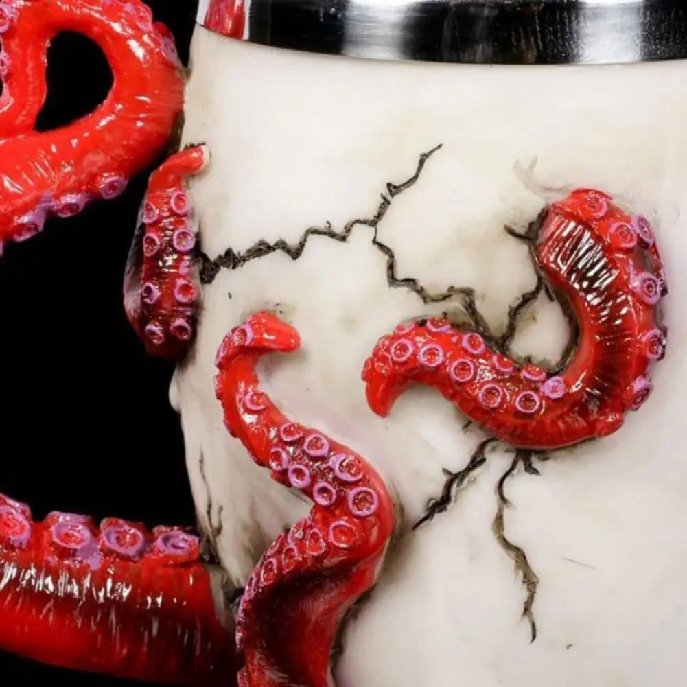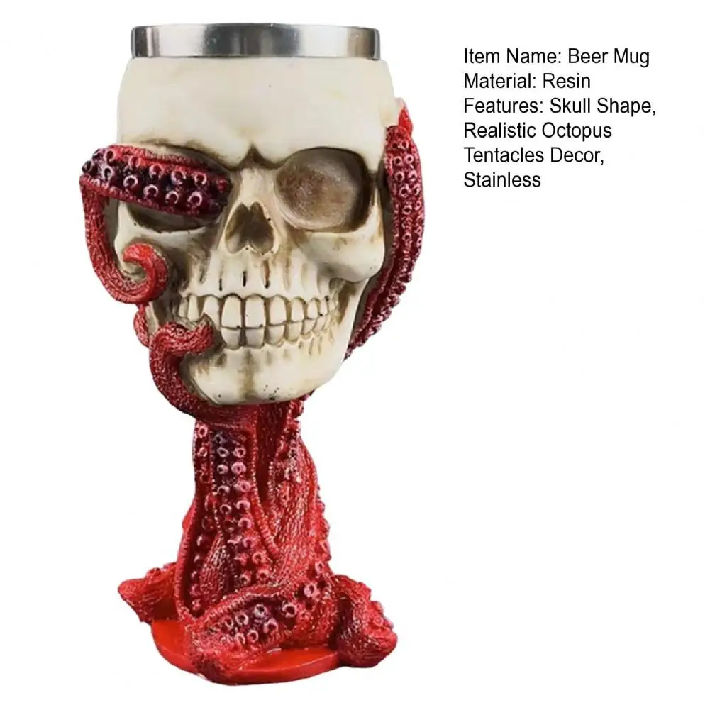 Skull Design Goblet Drinking Cup Realistic Octopus Tentacles Stainless Steel Beer Mug Halloween Party Wine Cup Novelty Whisky