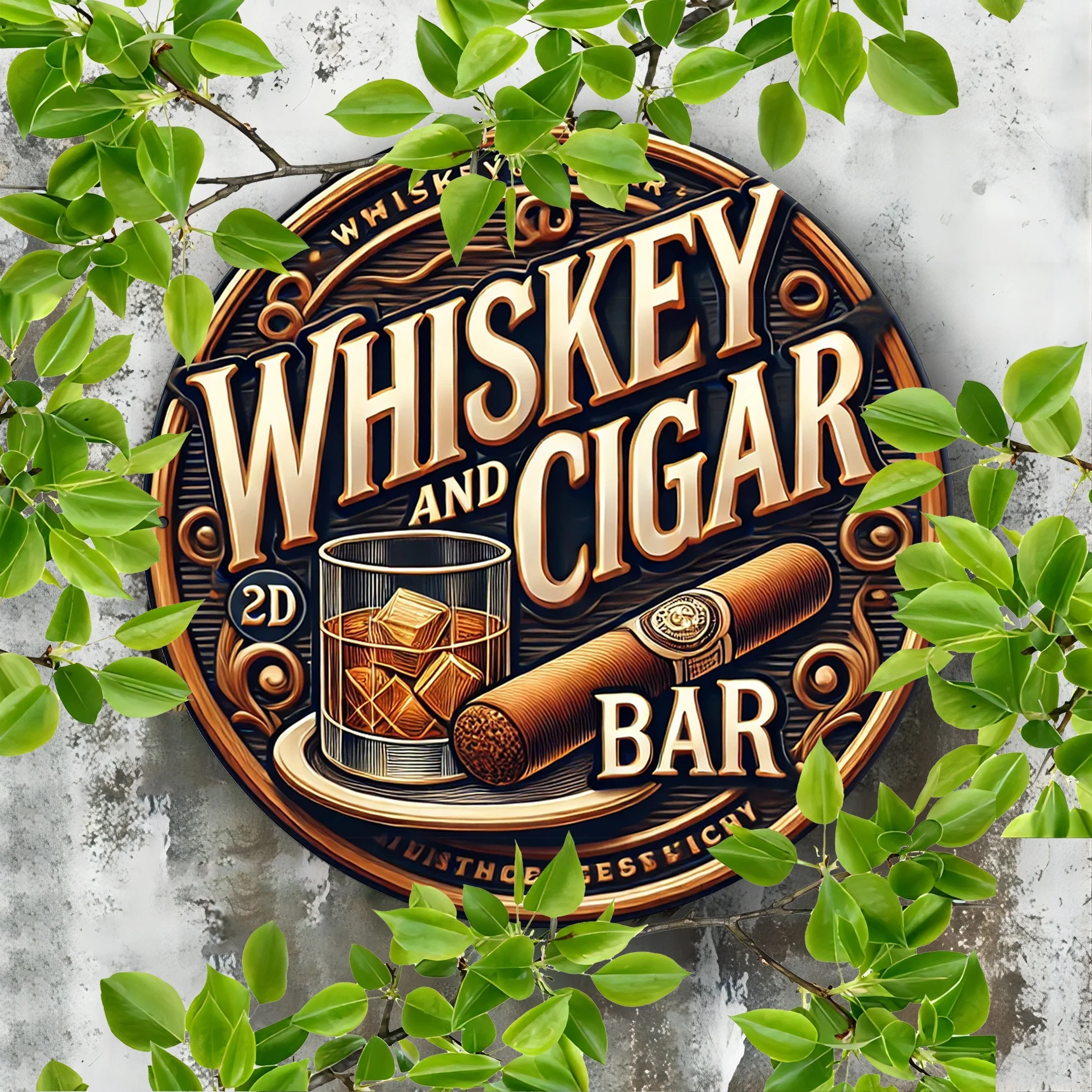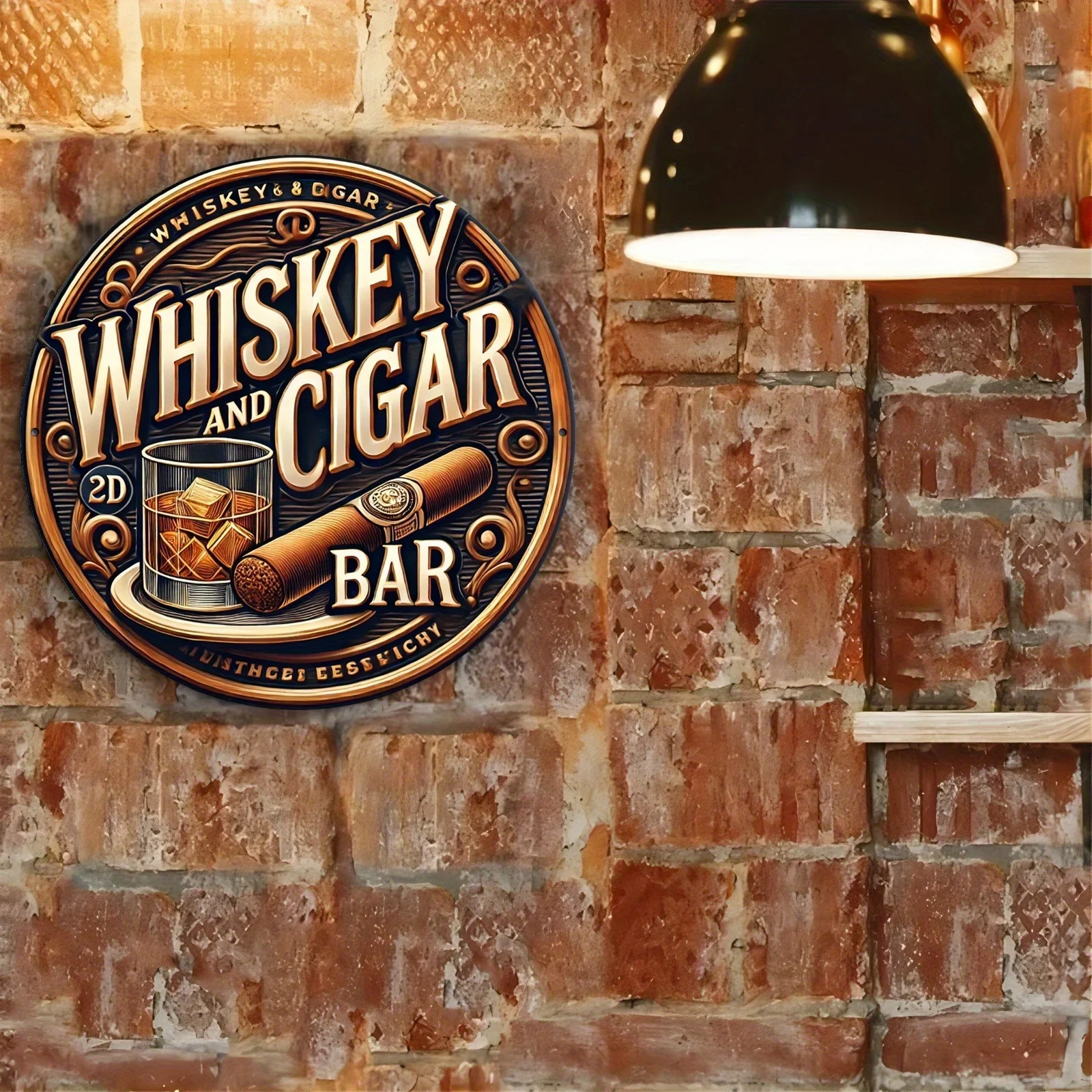 Vintage Whiskey & Cigar Metal Wall Art - 8X8in Aluminum Sign for Bar, Man Cave, and Home Decor